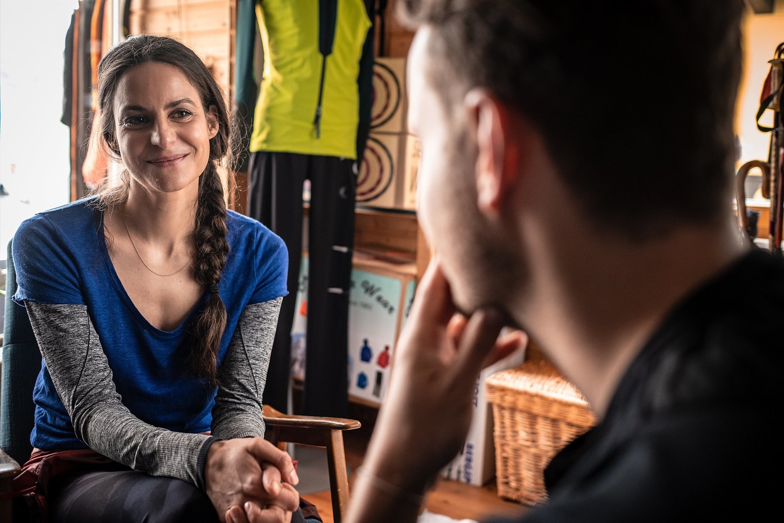 Außergewöhnlich einzigartig (1)Julia Obermeier (Liane Forestieri) fühlt sich noch nicht fit genug für geführte Wandertouren. Doch vielleicht kann Marlon Schubert (Nicolas Wolf) sie unterstützen.Bild: © ZDF und Raymond Roemke.