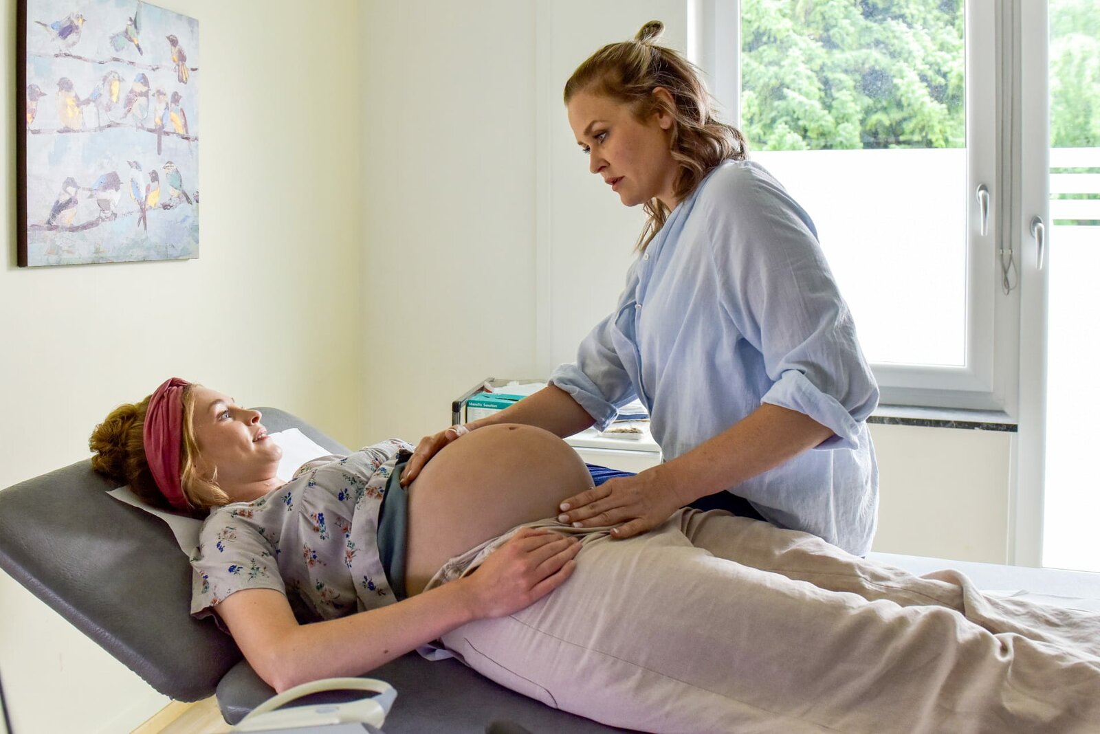Freiheit (1)Lena Lorenz (Judith Hoersch, r.) ist über Lilly Waldhausers (Teresa Klamert, l.) Reaktion überrascht: Lilly scheint die Gefahr, die von der Querlage ihres Babys ausgeht, nicht zu begreifen.Bild: © ORF/ZDF/Susanne Bernhard