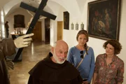 Von weit her (1)Lena Lorenz (Patricia Aulitzky, m.) und die Sozialarbeiterin Frau Müllner (Eli Wasserscheid) fragen Bruder Andreas (Winfried Hübner), ob das Kloster auch als Unterkunft für die Flüchtlinge genutzt werden könnte.Bild: © ORF
