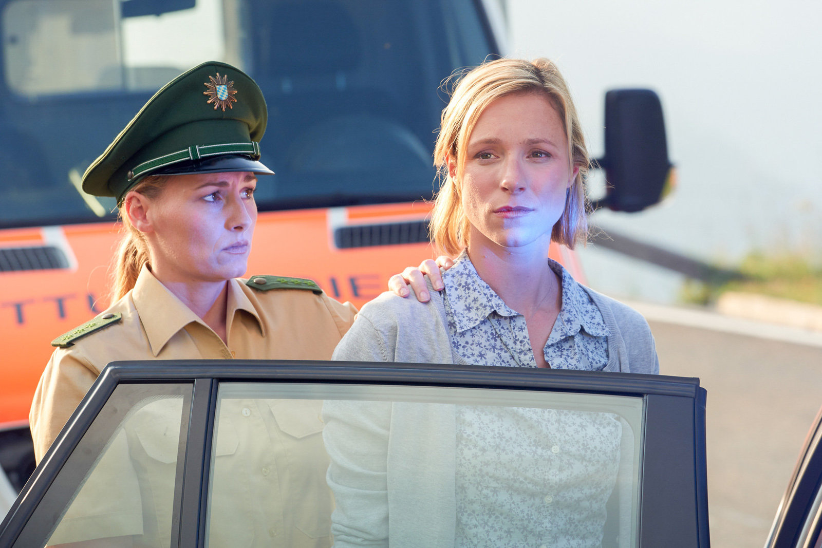 Spurlos verschwunden (1)Ines Fischer (Friederike Linke, r) wird von Polizeiobermeisterin Anne Prückl (Sarah Lavinia Schmidbauer) in Gewahrsam genommen.Bild: © ORF