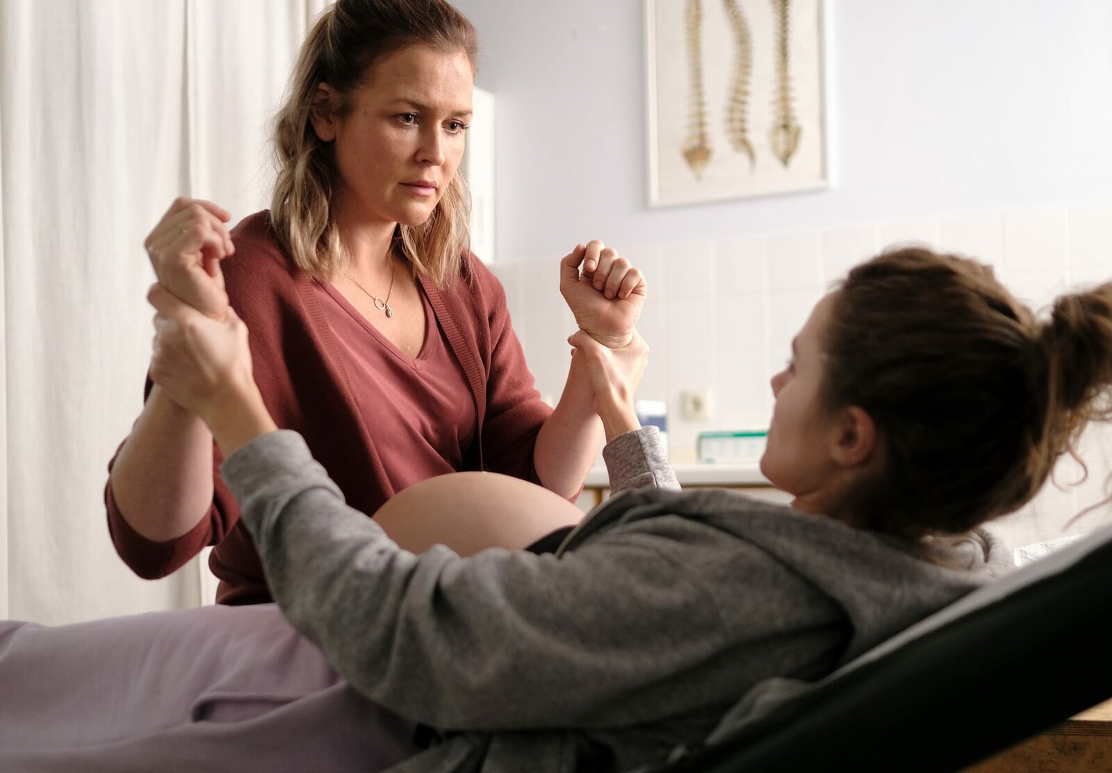 Hinter Gittern (1)Sally Wilkens (Henriette Hölzel, r.) reagiert zunächst abwehrend, als Lena Lorenz (Judith Hoersch, l.) sie untersuchen möchte.Bild: © ZDF und Kerstin Stelter.