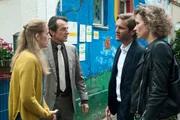 KinderspielOlivias (Adina Vetter, r.) Ex-Mann Christian (Kai Ivo Baulitz, 2.v.r.) ist außer sich, als er mitbekommt, dass Olivias neuer Freund des sexuellen Missbrauchs in der Kita verdächtigt wird. Radek (Hans-Werner Meyer, 2.v.l.) und Sabine Jahn (Cristin König, l.) versuchen ihn zu beruhigen. Bis jetzt ist noch nichts bewiesen.Bild: © ZDF und Oliver Feist