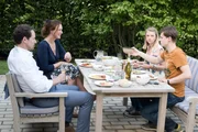 LiebesverratRoman (Tom Böttcher, r.) ist damit überfordert, sich nach all den Jahren an das Familienleben mit seinem Vater (Felix Kramer, l.), dessen Frau Sonja (Deborah Kaufmann, 2.v.l.) und seiner Stiefschwester Julie (Sinje Irslinger, 2.v.r.) zu gewöhnen.Bild: © ZDF und Oliver Feist