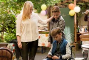 KinderspielOlivia (Adina Vetter, M.) ist froh, dass sich ihre Tochter Greta (Lia Vynona Furems, l.) mit ihrem neuen Freund Leon (Anton Rubtsov, r.) so gut versteht.Bild: © ZDF und Daniela Incoronato