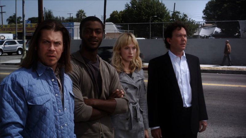 AusgebremstV.l.: Alec Hardison (Aldis Hodge), Parker (Beth Riesgraf), Nate Ford (Timothy Hutton), Eliot Spencer (Christian Kane)Bild: © RTL NITRO