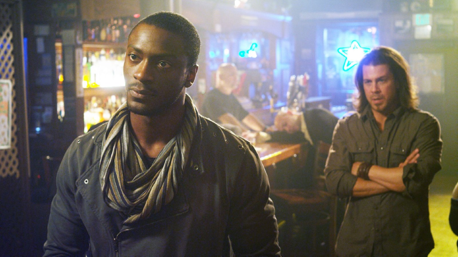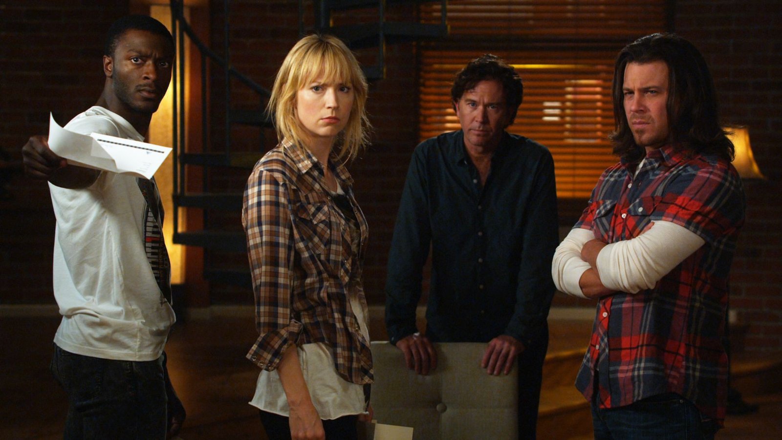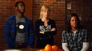 SchuldscheinDie Besitzerin einer Bar soll die Schulden ihres verstorbenen Vaters innerhalb von zwei Stunden begleichen. Sie bittet das Lerverage-Team um Hilfe. Die Zeit ist knapp und v.l.: Alec Hardison (Aldis Hodge), Parker (Beth Riesgraf) und Eliot (Christian Kane) müssen einen Notfall-Plan schmieden.Bild: © RTL Crime / TNT
