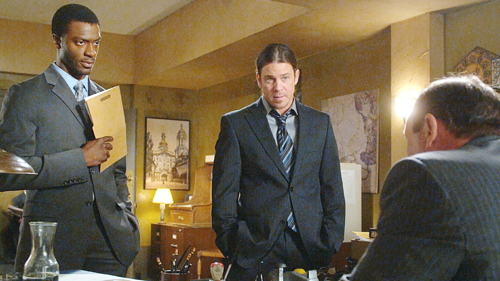 EierdiebeEliot Spencer (Christian Kane, r.) und Alec Hardison (Aldis Hodge) ermitteln in einem Fall, bei dem ein neun Millionen Dollar Kunst-Ei gestohlen wurde. Sie vermuten, dass es sich dabei um einen Versicherungsbetrug handelt.Bild: © RTL NITRO