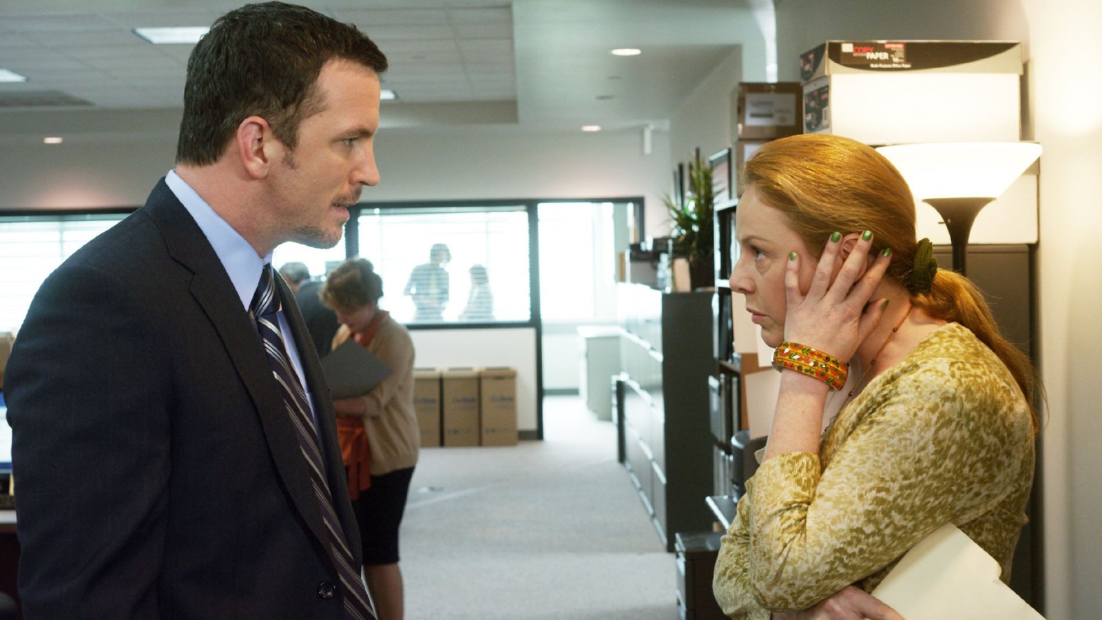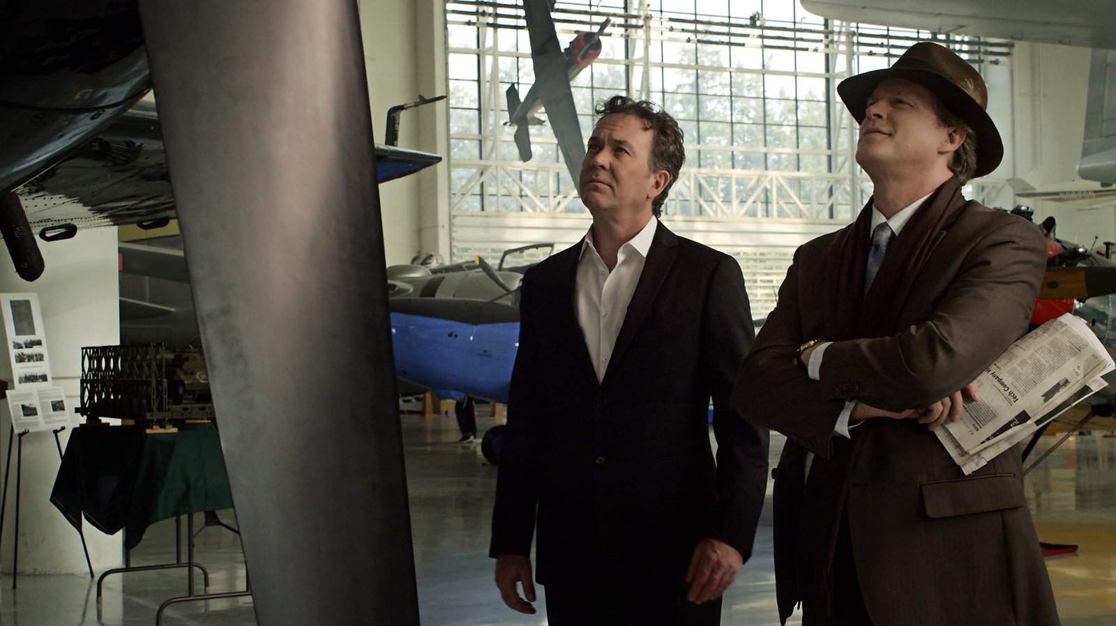 BruchlandungNathan Ford (Timothy Hutton, l.) gibt vor, sich für diverse Flugzeugträger zu interessieren und hofft, dass ihm Scott Roemer (Cary Elwes), Chef einer Fluggesellschaft, Einblick in das Unternehmen gewährt.Bild: © RTL Crime