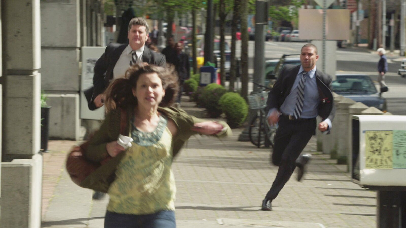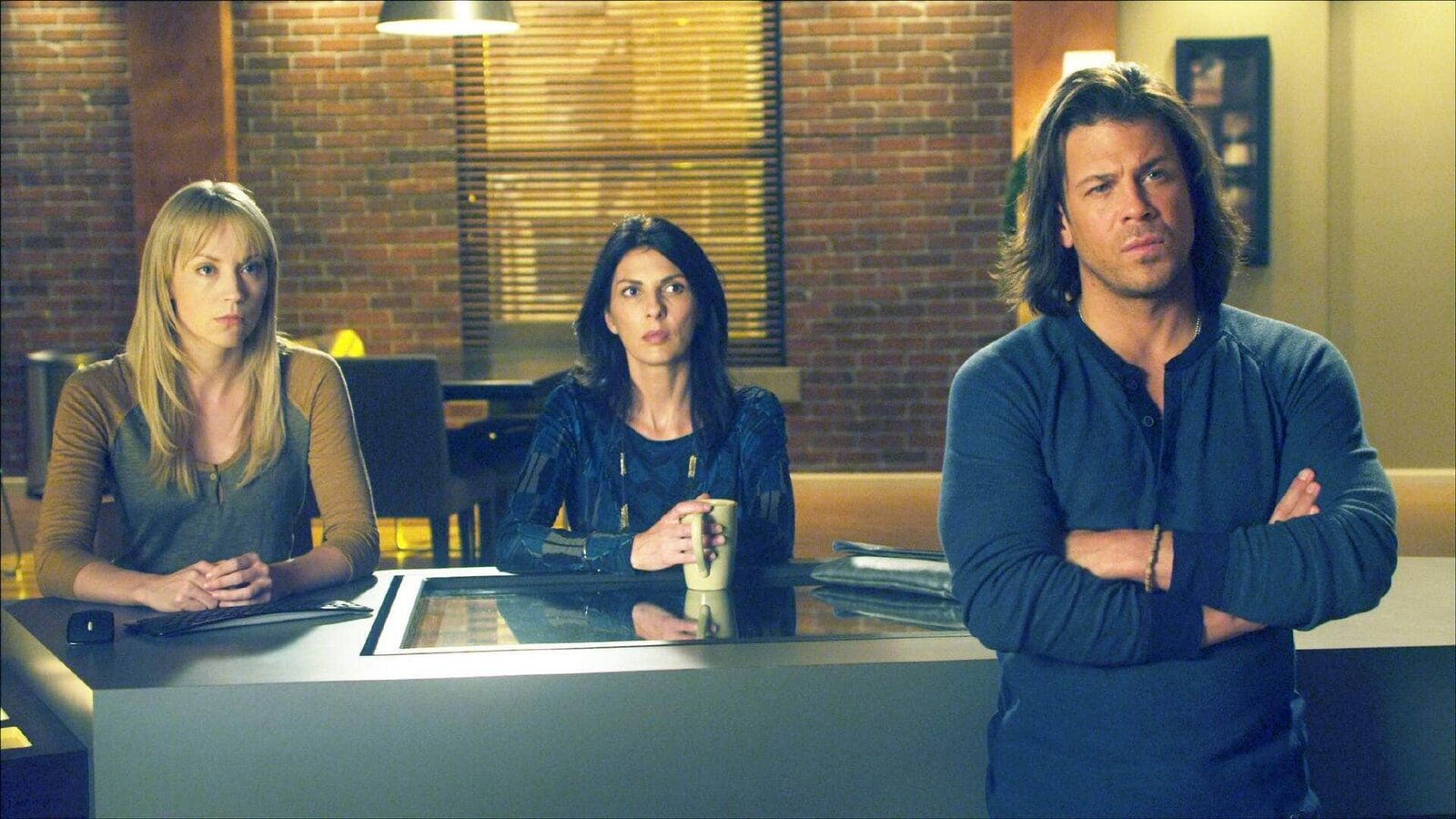 UmzingeltV.l.: Parker (Beth Riesgraf), Sophie Devereaux (Gina Bellman) und Eliot Spencer (Christian Kane) sind wenig begeistert. Sie geraten immer wieder in den Vater-Sohn-Konflikt eines ihrer Gruppenmitglieder.Bild: © RTL Crime / TNT