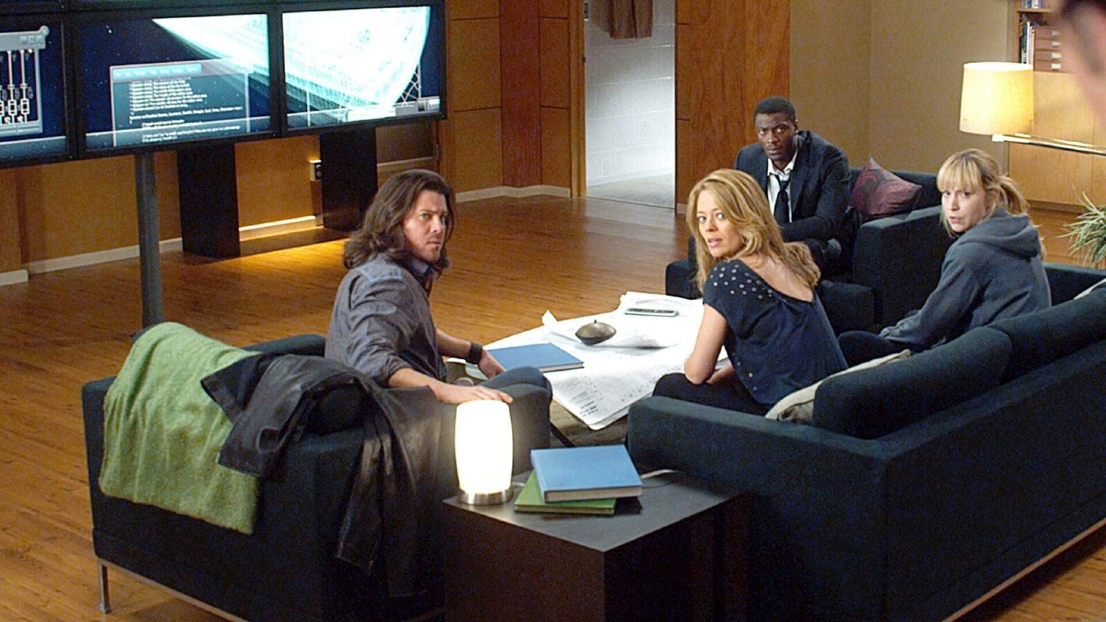 Höhle des LöwenWie soll das Leverage-Team weiter vorgehen? V.l.: Eliot Spencer (Christian Kane), Tara Cole (Jeri Ryan), Alec Hardison (Aldis Hodge) und Parker (Beth Riesgraf) sind gezwungen, sehr vorsichtig zu handeln. Das FBI ist hinter ihnen her und möchte das Team ein für alle Mal hinter Gitter bringen.Bild: © RTL Die Verwendung des RTL Crime-Bildmaterials ist nur zur redaktionellen Berichterstattung im Zusammenhang mit der jeweiligen Sendung unter Angabe der Credits/Quellenangabe und Beachtung der unter ht