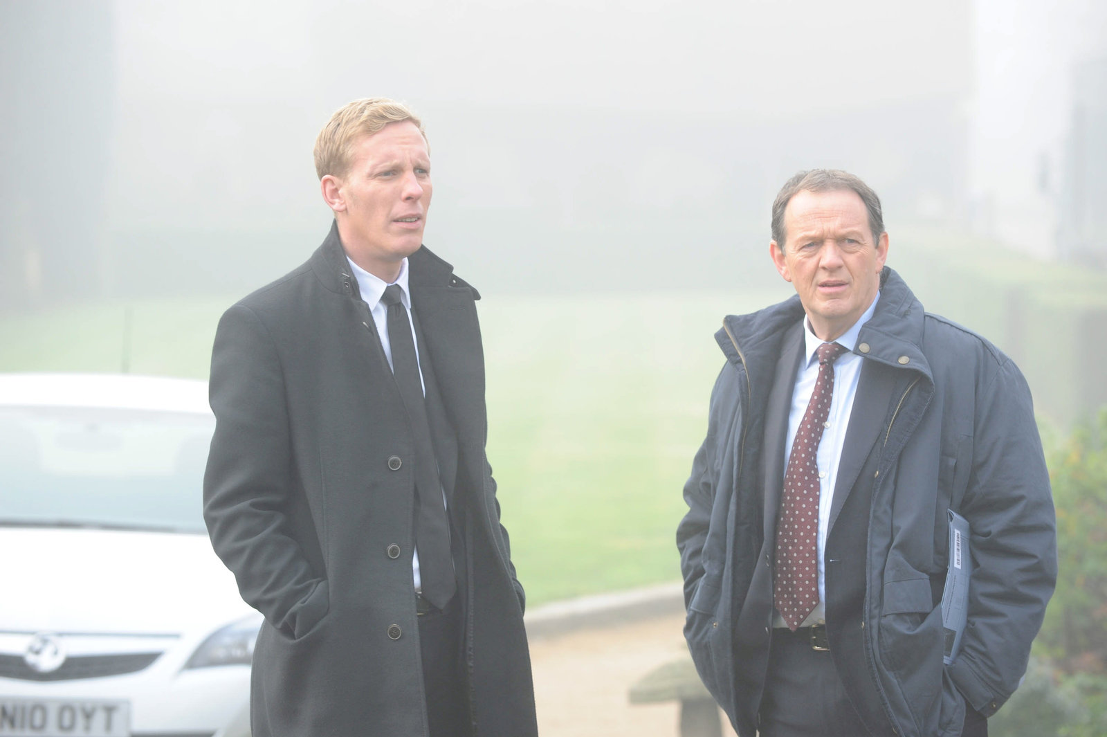 Offene WundenInspektor Lewis (Kevin Whately, r.) und Sergeant James Hathaway (Laurence Fox) stehen kurz vor der Lösung ihres Falles.Bild: © ZDF und ROBERT DAY