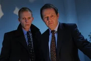Inspector Lewis (Kevin Whately, l) und sein Assistent James Hathaway (Laurence Fox) stoßen bei den Freunden und Kollegen des Ermordeten auf eine Mauer des Schweigens.Bild: © ITV/RR- ITV