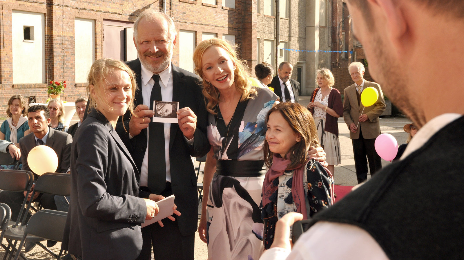 Liebling, bring die Hühner ins BettPosieren für ein Familienbild: v.l.n.r.: Kai Teuffel (Ludwig Blochberger), Sofie Teuffel (Jana Güttgemanns), Beate Teuffel (Barbara Rudnik), Steffen Teuffel (Axel Milberg) und Lisa Teuffel (Philippine Pachl).Bild: © ZDF und WDR/Conny Klein.