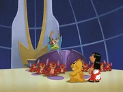 Auf Hawaii herrscht das totale Chaos: Der als Stitch getarnte Leroy rastet nur noch aus. Sofort begeben sich Jamba und Pleakley mit Stitch auf den Weg zur Erde, um Lilo, l. und ihren Freunden zu helfen ...Bild: © TV Puls