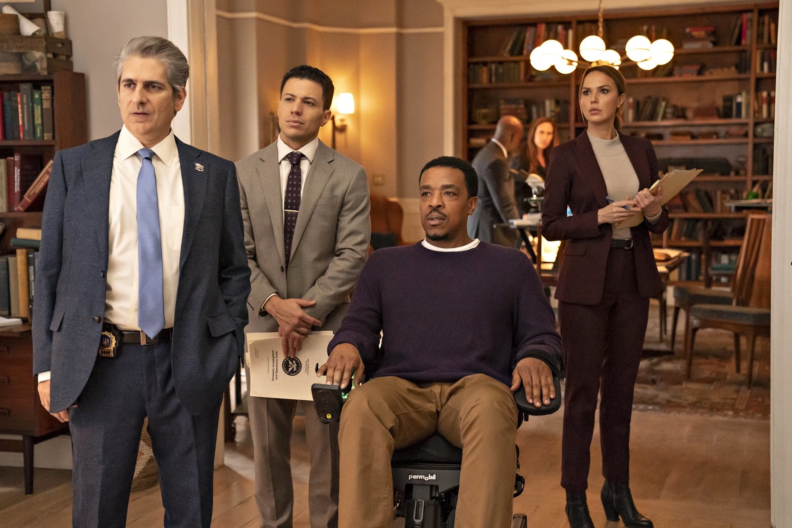 Mit offenem Visier(v.l.n.r.) Detective Michael Sellitto (Michael Imperioli); Detective Eric Castillo (Ramses Jimenez); Lincoln Rhyme (Russell Hornsby); Amelia Sachs (Arielle Kebbel)Bild: © 2020 NBCUniversal Media, LLC / Barbara Nitke Lizenzbild frei