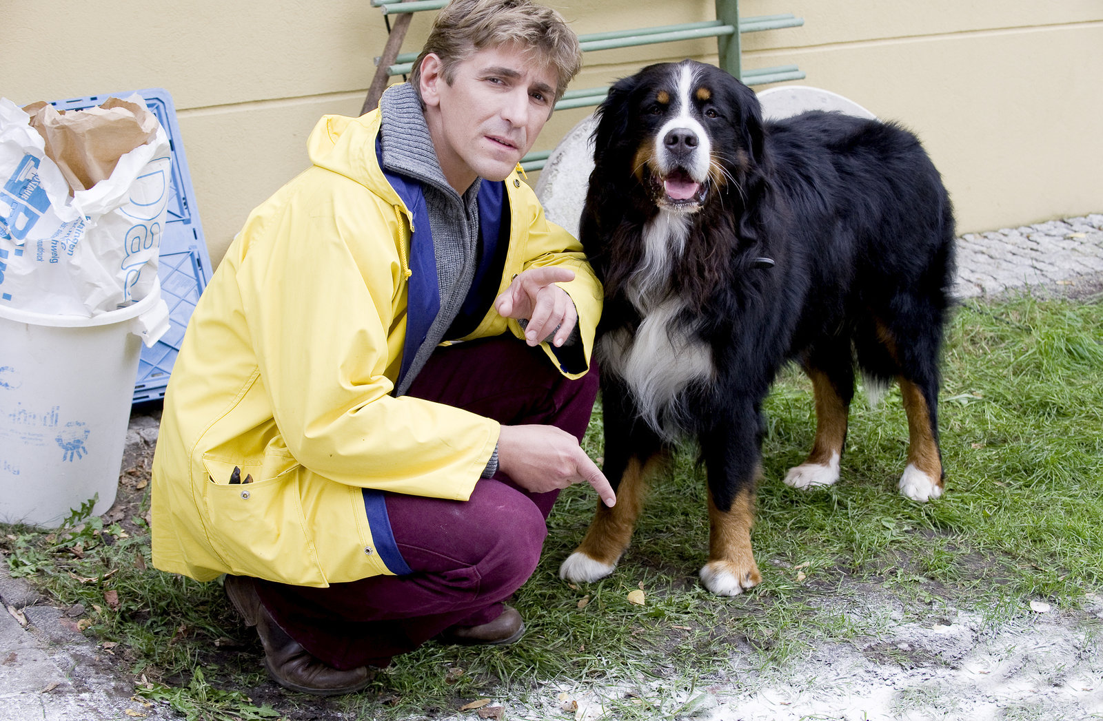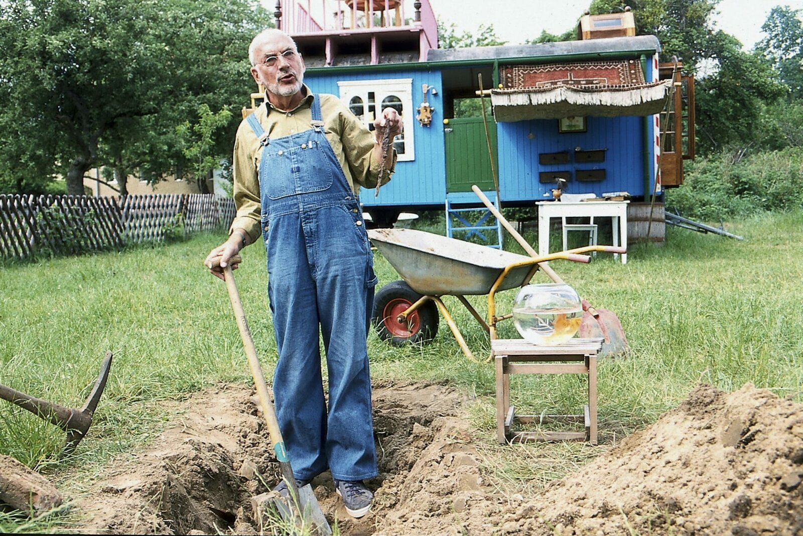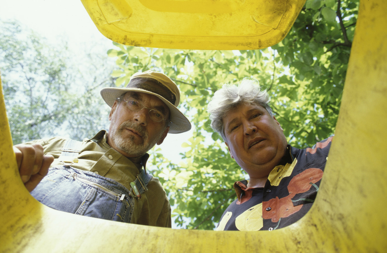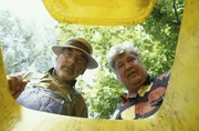 Peters Müll-TourDa schauen Peter Lustig und sein Nachbar (Helmut Krauss) ganz schön in die Tonne. Der Müll ist weg! Und damit auch Paschulkes wertvollster Gartenzwerg.Bild: © ZDF und Christiane Pausch