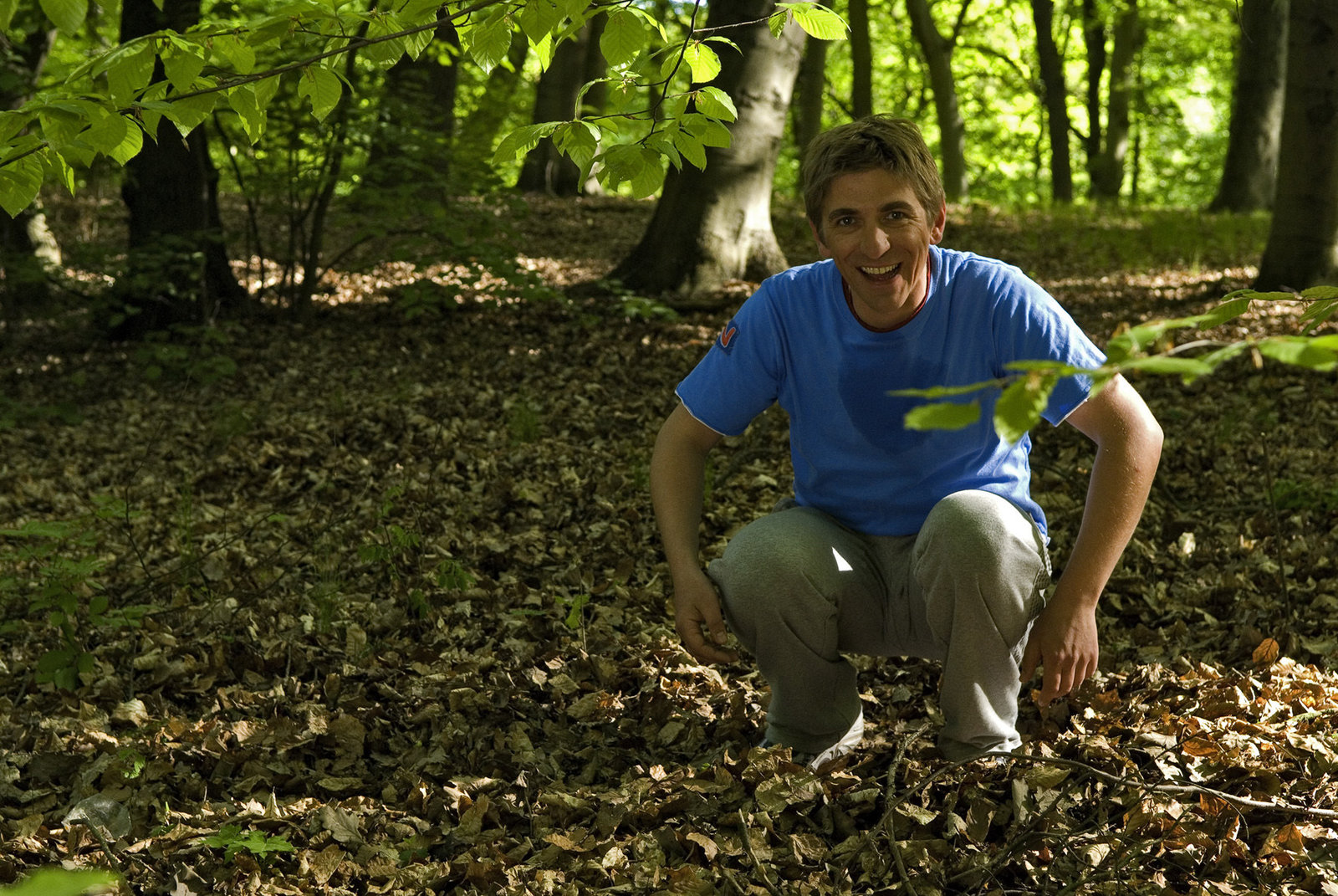 Blut - Rätselhafte SpurenMit sportlichen Übungen im Wald bringt Fritz Fuchs (Guido Hammesfahr) seinen Blutkreislauf in Wallung.Bild: © ZDF/Thomas Bergmann