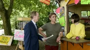 Essen - Kleiner Happen, große WirkungHerr Kluthe (Holger Handtke, li.) kann Fritz (Guido Hammesfahr, Mitte) nicht helfen. Wenn der Kiosk zu wenig Kunden hat, bekommt ihn jemand anderes. Und Rosa Rehbock (Sophie Rois) ist schon ganz verliebt in den kleinen Laden.Bild: © ZDF und Antje Dittmann