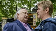 Ameisen - Rettet die KöniginFritz Fuchs (Guido Hammesfahr, l.) kann es kaum glauben, Nachbar Paschulke (Helmut Krauss, r.) spielt sich als Ameisenexperte auf: Angeblich handele es sich hier um gefährliche Killerameisen.Bild: © ZDF und Antje Dittmann