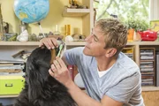 Rotz und Co. - Nichts für schwache NervenFritz Fuchs (Guido Hammesfahr) startet mit seinem Hund Keks mit einer gründlichen Morgentoilette in den Tag.Bild: © ZDF und Ole Schwarz