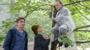 Luchs - Der listige JägerDer ängstliche Herr Kluthe (Holger Handtke, r.) ist vor dem Luchs geflüchtet. Seine Mutter (Margot Nagel) und Fritz Fuchs (Guidoo Hammesfahr) finden ihn tief im Wald.Bild: © ZDF und Antje Dittmann