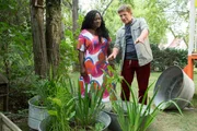 Libelle - Das glitzernde GeheimnisMarla (Thelma Buabeng) ist mal wieder nebenan zu Besuch und Fritz (Guido Hammesfahr) zeigt ihr sein neues Feuchtbiotop.Bild: © ZDF/Zia Ziarno