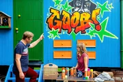 Graffiti - Wer sprayt, der fliegt!"Ist das dein Kunstwerk?" fragt Fritz (Guido Hammesfahr, l.) die talentierte, rebellische Luzie (Luisa Römer).Bild: © ZDF/Andrea Hansen Fotografie