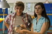 Sonnenenergie - Strom für die FinsternisDie Elektroverkäuferin (Nora Tschirner) beweist Fritz Fuchs (Guido Hammesfahr), dass selbst der kleine Spielzeughubschrauber mit Sonnenenergie fliegt.Bild: © ZDF/Thomas Bergmann