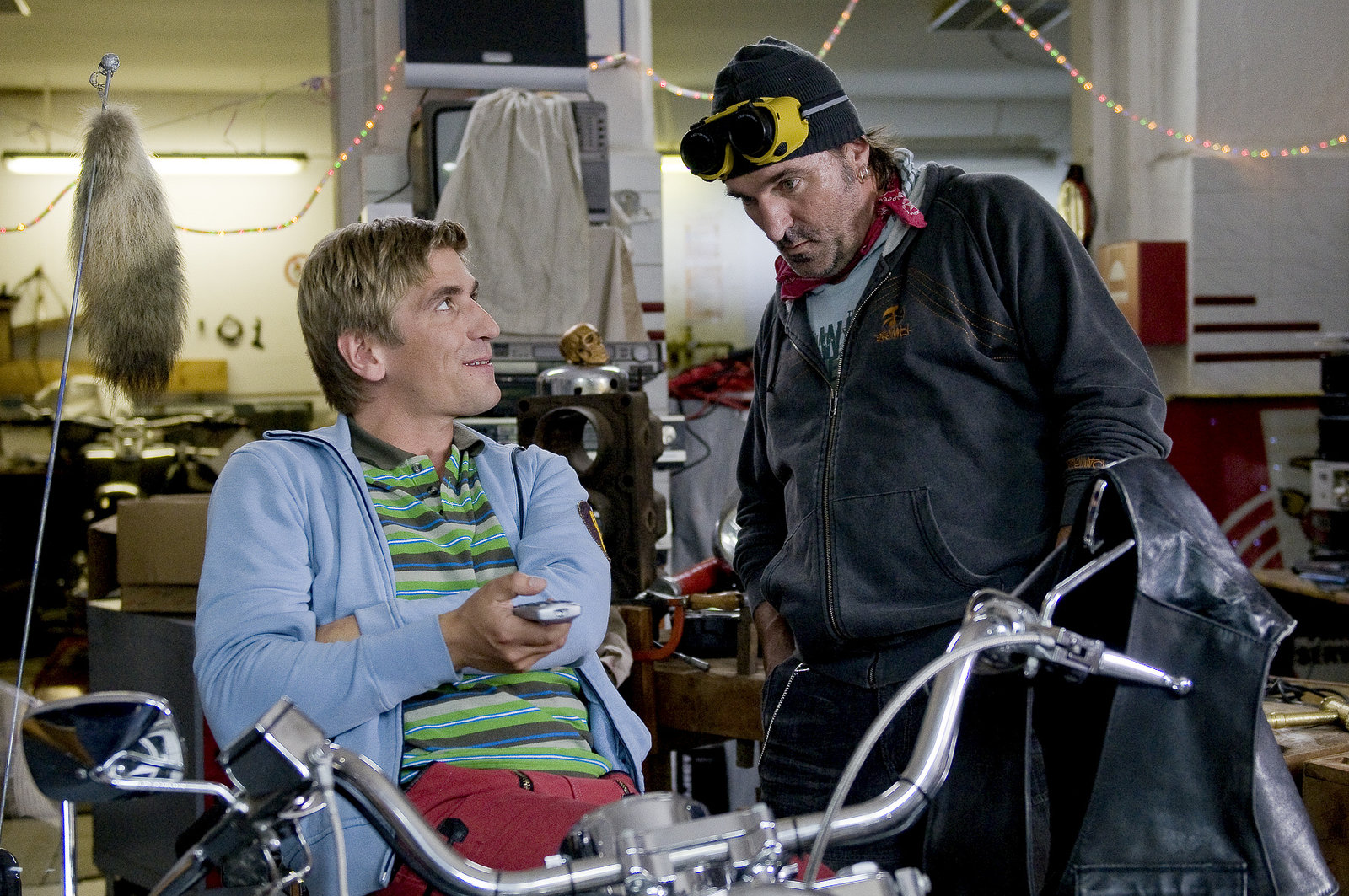 Licht - Die zauberhafte ErleuchtungBastelexperten unter sich. Wie funktioniert eigentlich eine Fernbedienung? Fritz Fuchs (Guido Hammesfahr, l.) diskutiert mit seinem alten Kumpel Schrauben-Harry (Andreas Hoppe).Bild: © ZDF und Antje Dittmann