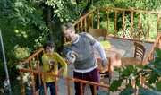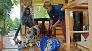 Schwein - Die superschlaue Mini-SauDas verirrte Schweinchen hat ganz schön Chaos im Bauwagen angerichtet. Fritz Fuchs (Guido Hammesfahr) und Louisa (Nicolais Borger) versuchen, es zu fangen.Bild: © ZDF und Antje Dittmann
