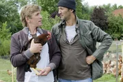 Hühner - Das große GackernDer Hahn für mehr Hühnerglück! Fritz Fuchs (Guido Hammesfahr) bedankt sich bei Bauer Tavuk (Ercan Durmaz) für seinen prächtigen Zuchthahn.Bild: © ZDF/Antje Dittmann