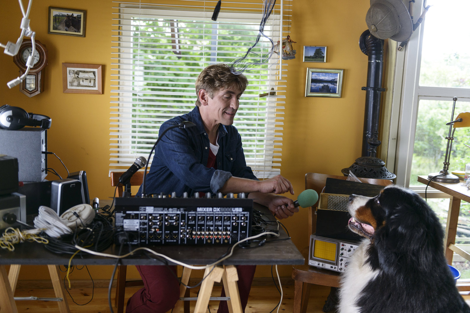 Radio - Elvis verzweifelt gesuchtFritz (Guido Hammesfahr) im neuen Bauwagen-Radiostudio. Keks übt sich als erster Moderator.Bild: © ZDF und Antje Dittmann