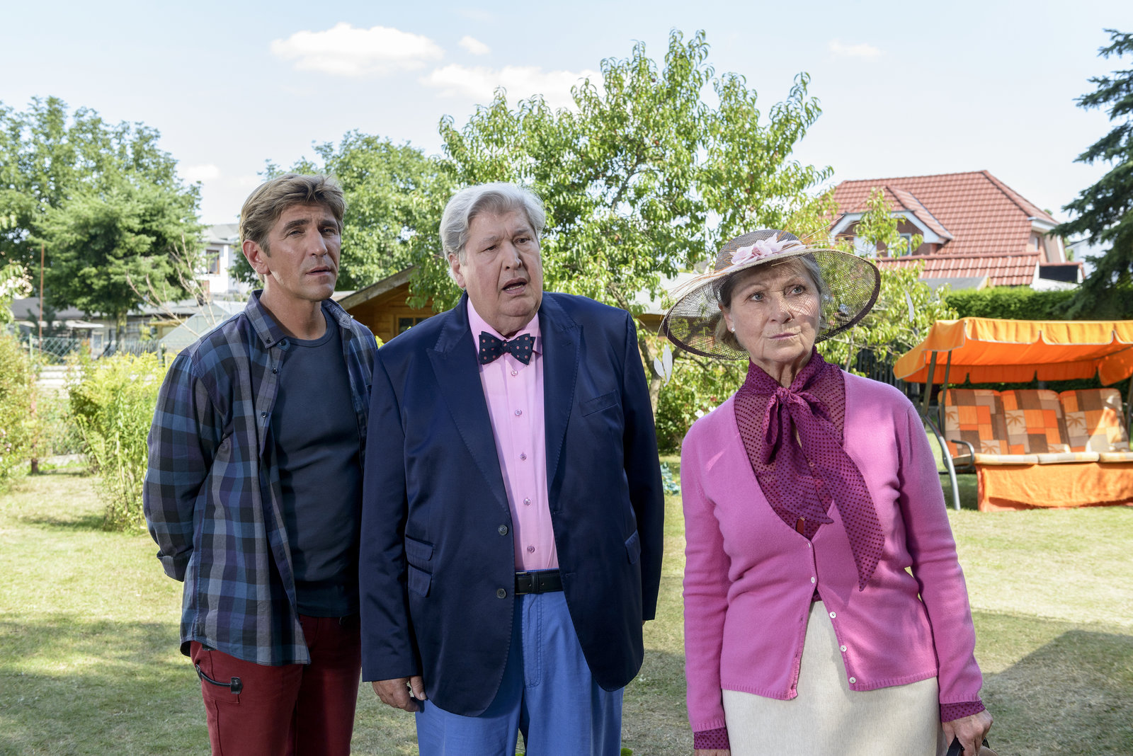 Fliege - Das verflixte TreffenFritz Fuchs (Guido Hammesfahr, l.), Nachbar Paschulke (Helmut Krauss, M.) und Mutti Kluthe (Margot Nagel, r.) staunen nicht schlecht, als sie merken, was hinter der Fliegenplage stecken könnte.Bild: © ZDF und Antje Dittmann