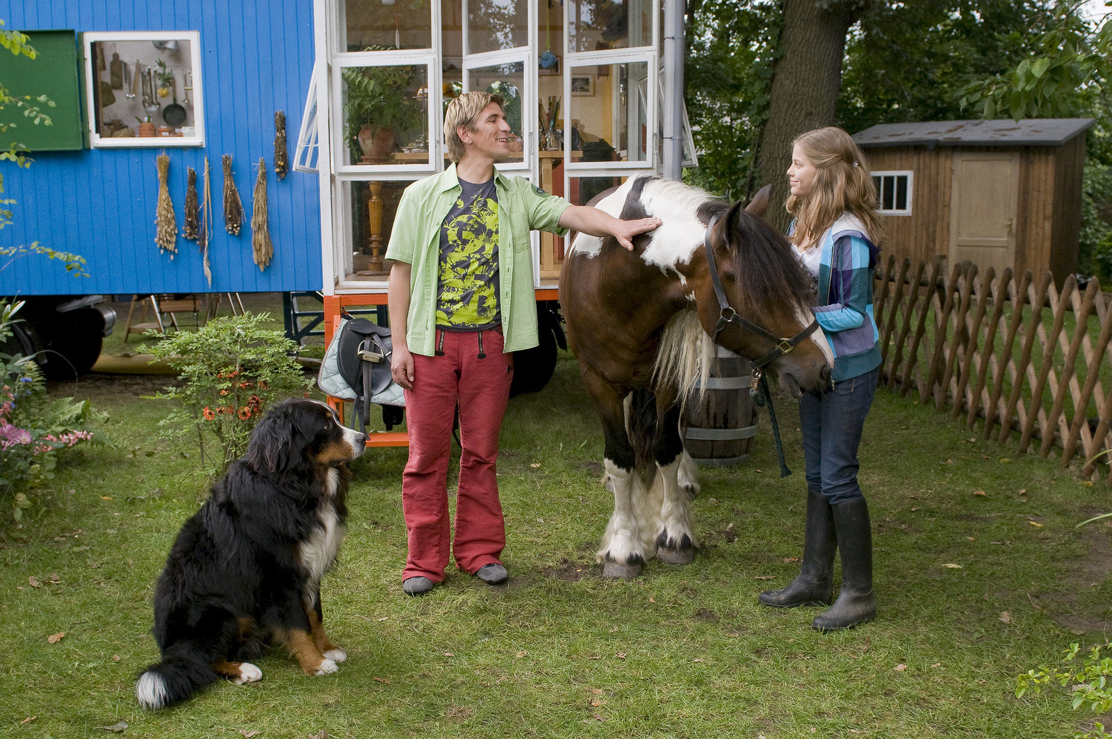 Pferde - Der rettende SprungPia (Sophie Karbjinski) will ihr Pferd unbedingt bei Fritz Fuchs (Guido Hammesfahr) verstecken.Bild: © ZDF und Antje Dittmann