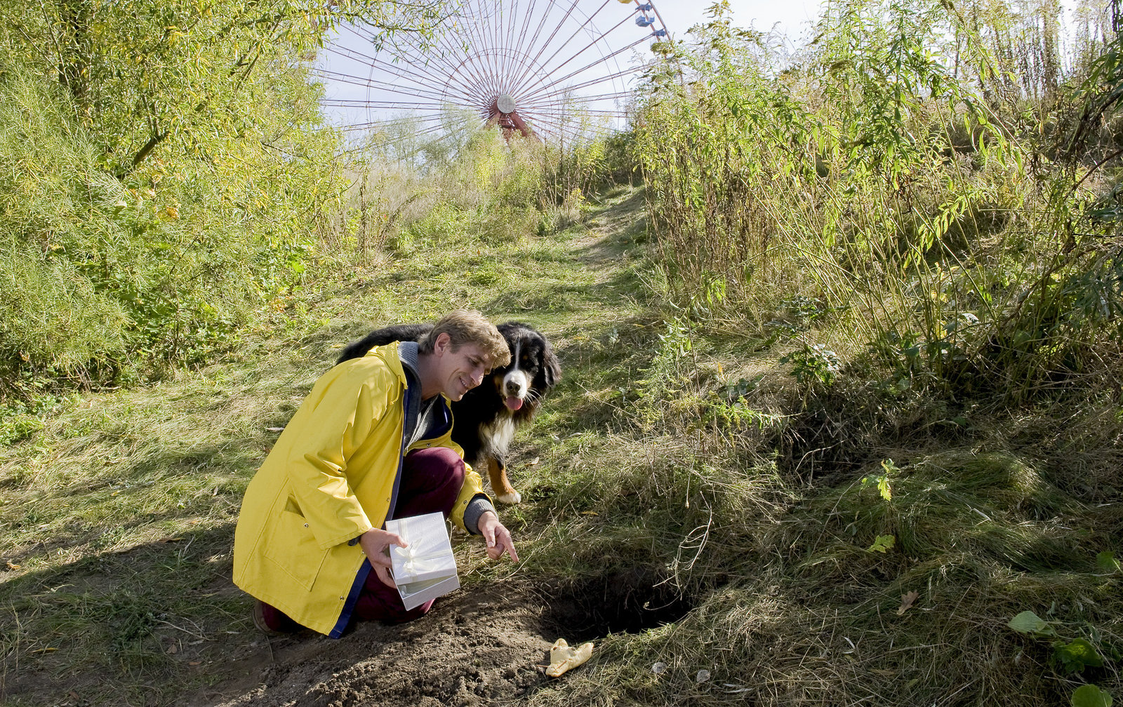 Fuchs - Auf furchtloser FährteNah bei der Stadt haben Fritz Fuchs (Guido Hammesfahr) und Keks einen Fuchsbau aufgestöbert.Bild: © ZDF und Antje Dittmann