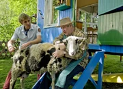 Schafe - Ausreißer im WollpelzFritz Fuchs (Guido Hammesfahr, l.) und Nachbar Paschulke (Helmut Krauss) mit Schaf.Bild: © ZDF und Antje Dittmann