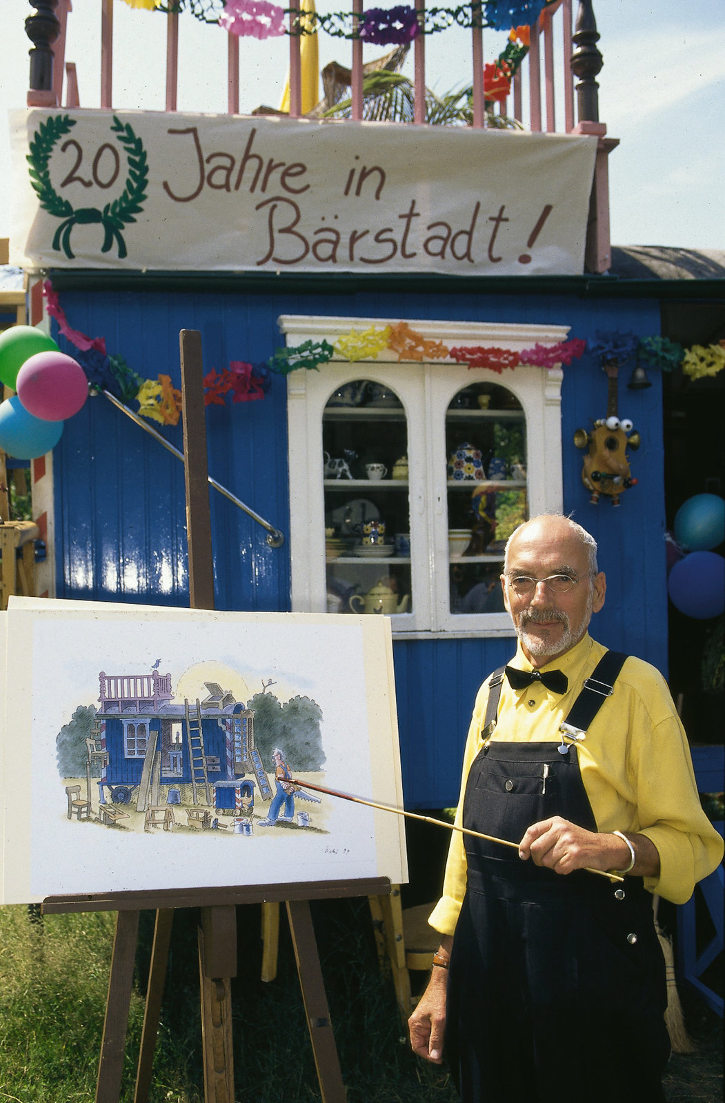 Peters famose HosePeter (Peter Lustig) ist mit seinem Bauwagen bereits 20 Jahre in Bärstadt. Dieses Jubiläum will er feiern. (Ukulele)Bild: © ZDF und Christiane Pausch