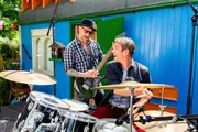 Lampenfieber - Die starke BandDer Auftritt muss klappen. Der berühmte Rockstar Eric Laszlo (Jürgen Vogel) motiviert Fritz Fuchs (Guido Hammesfahr), trotz seines Lampenfiebers mitzuspielen.Bild: © ZDF und Andrea Hansen Fotografie./Andrea Hansen Fotografie