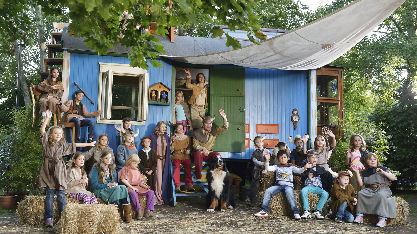 Archäologie - Wikinger in BärstadtFritz Fuchs (Guido Hammesfahr, M.) und Hund Keks haben zum Wikingerfest geladen - und das hat einen ganz ungewöhnlichen Grund.Bild: © ZDF und Antje Dittmann