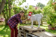 Ziege - Die verrückte EntführungFritz Fuchs (Guido Hammesfahr) hat das berühmte Maskottchen des FC Bärstadt zu Gast. Es ist Ziege Rosalie, auf die er besonders gut aufpassen muss.Bild: © ZDF und Antje Dittmann
