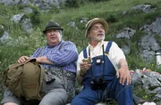 Peter klettert in den BergenEndlich eine Rast bei der Wanderung zur Bergspitze in den Alpen. Herr Paschulke (Helmut Krauss) denkt gleich ans Essen, aber Peter (Peter Lustig) macht Paschulke (Helmut Krauss) auf die wunderbare Pflanzen- und Tierwelt aufmerksam.Bild: © ZDF und Christiane Pausch