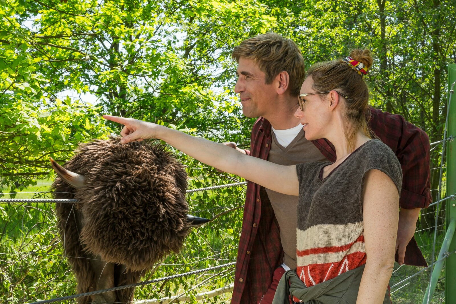 Wisent - Urtiere in GefahrAusgerechnet "Big Boy", der größte Wisent aus dem Naturpark, ist verschwunden. Fritz Fuchs (Guido Hammesfahr) und die Leiterin des Naturparks (Lavinia Wilson, r.) verfolgen seine Spuren. Mit allen Tricks wollen sie ihn wieder zurücklocken.Bild: © ZDF und Ole Schwarz.