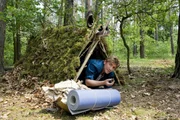 Wunderbarer Wald - Im Labyrinth der BäumeEine gemütliche Notunterkunft, nur noch ein paar Tannenzapfen muss Fritz (Guido Hammesfahr) aus dem Moospolster "entsorgen".Bild: © ZDF und Antje Dittmann./Antje Dittmann
