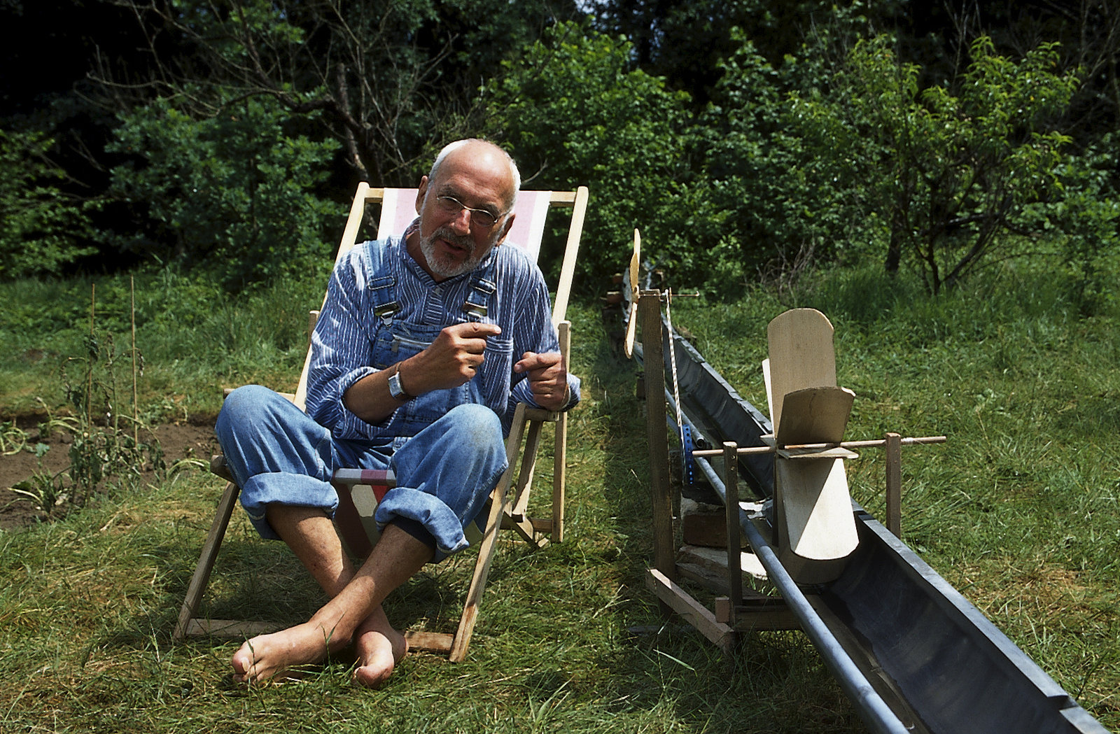 Peter staut das WasserEin heißer Sommer in Bärstadt. Beim Umleiten des Bärbachs in seinen Garten, entdeckt Peter die Wasserkraft und wie man diese nutzen kann.Bild: © ZDF und Christiane Pausch