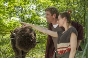 Störche - Nestsuche für den NachwuchsGanz vorsichtig! Fritz Fuchs (Guido Hammesfahr) hat mit Ella (Celine Tanneberger) und Hannes (Bela Baganz) den kleinen Storch entdeckt. Er ist aus dem Nest gefallen.Bild: © ZDF und Antje Dittmann