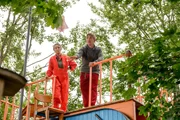 Fallschirm - Die verflixte LandungTest für den Mini-Fallschirm Marke Eigenbau. Fritz Fuchs (Guido Hammesfahr) und Rosi (Renate Serwotke) sind gespannt, ob der Fallschirm eine Kamera trägt.Bild: © ZDF und Antje Dittmann