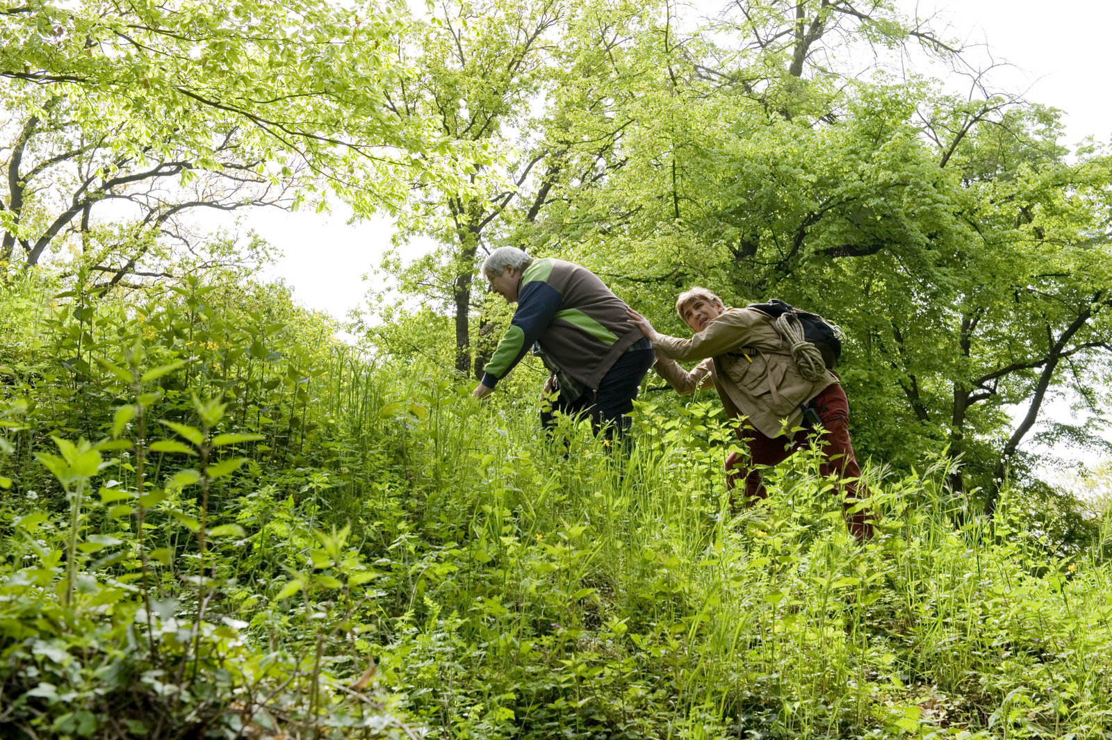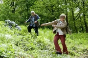 Geocaching - Schatzjagd mit dem GPSMit 'Hindernissen' durchs Gelände - Fritz Fuchs (Guido Hammesfahr, r.) und sein Nachbar (Helmut Krauss, l.) bahnen sich teilweise mühsam den Weg zum Schatz.Bild: © ZDF und Antje Dittmann