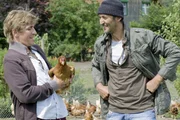 Hühner - Das große GackernDieser Hahn von Bauer Tavuk (Ercan Durmaz, r.) soll die Hühnerzucht von Fritz Fuchs (Guido Hammesfahr, l.) ankurbeln.Bild: © ZDF und Antje Dittmann