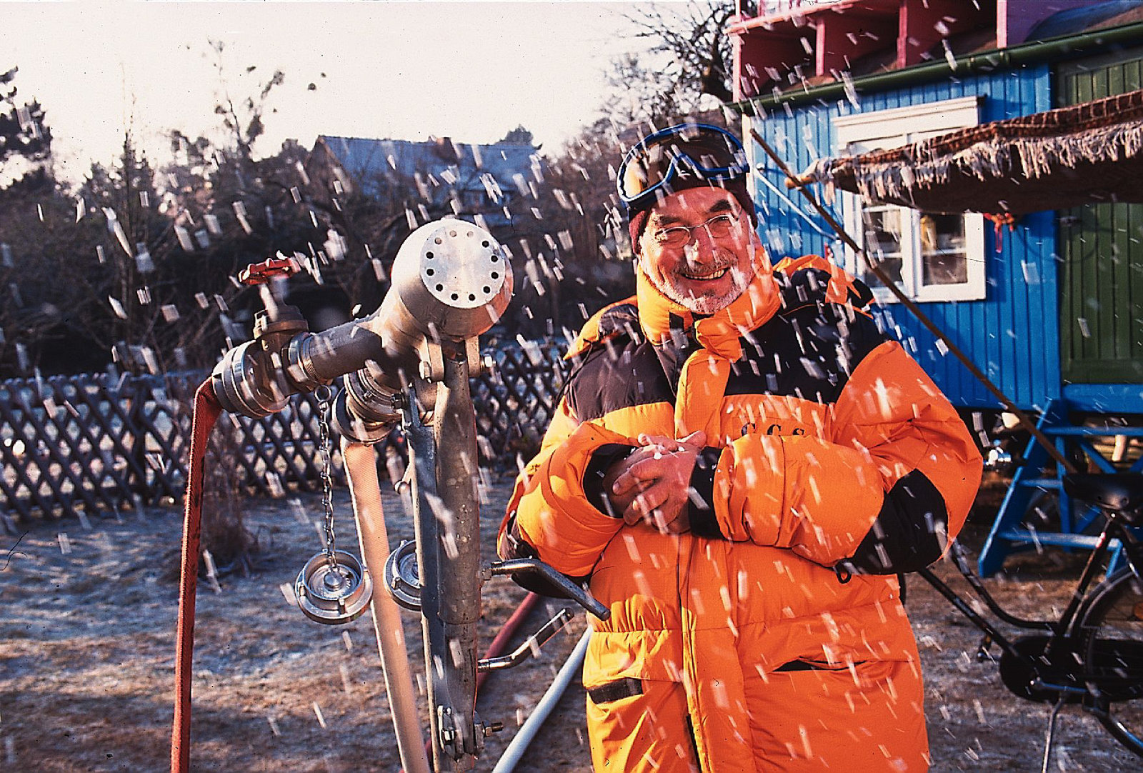Wenn's dem Wasser zu kalt wirdPeter Lustig (Peter Lustig) ist stolzer Besitzer einer neuen Skiausrüstung - jetzt fehlt nur noch der nötige Schnee. Da das Wetter nicht mitspielt, besorgt Peter Lustig sich eine Schneemaschine.Bild: © ZDF und Christiane Pausch