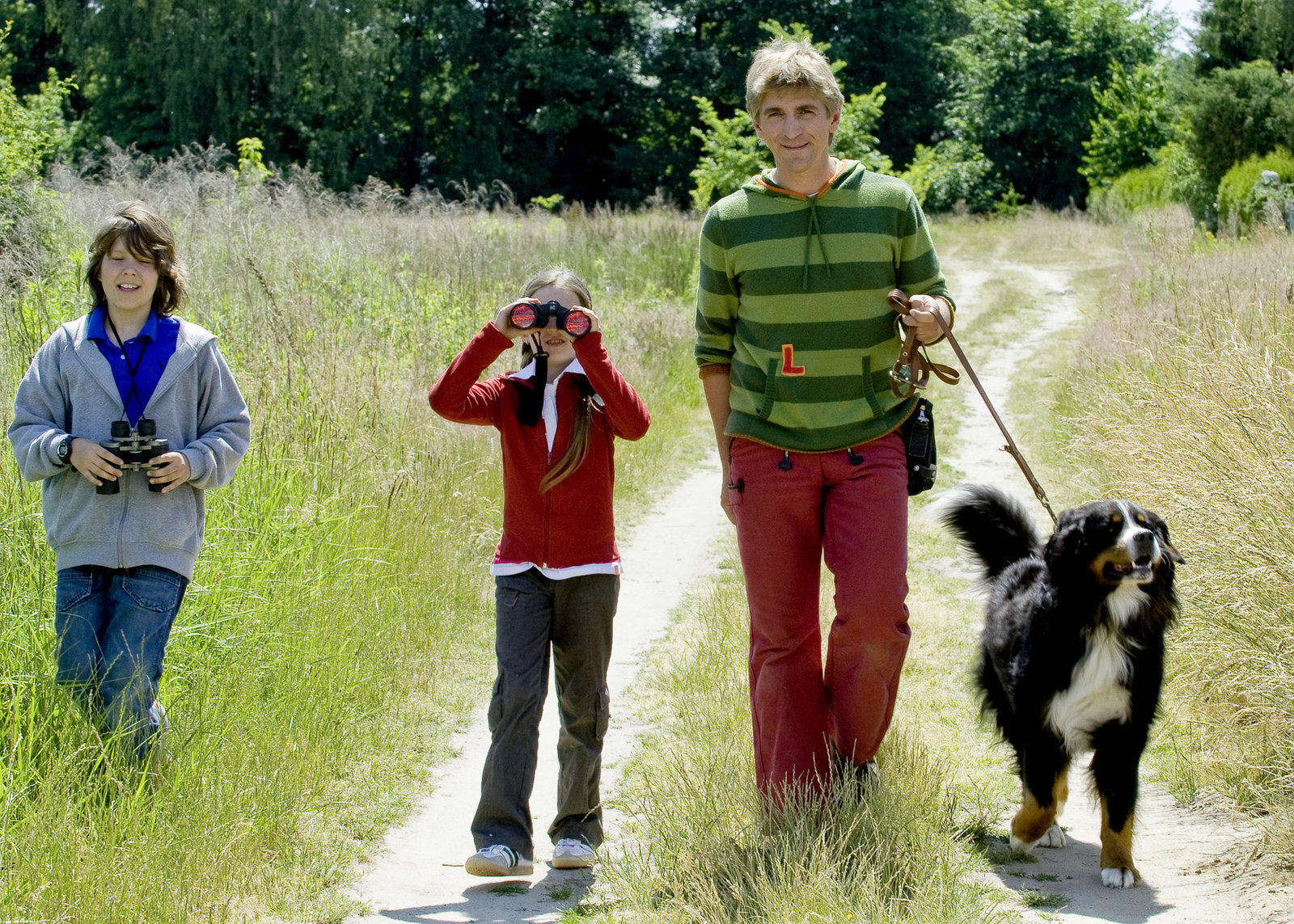 Störche - Nestsuche für den NachwuchsOb es in Bärstadt noch mehr Störche gibt? Fritz Fuchs (Guido Hammesfahr) macht sich mit Ella (Celine Tanneberger), Hannes (Bela Baganz) und Keks auf den Weg.Bild: © ZDF/Antje Dittmann